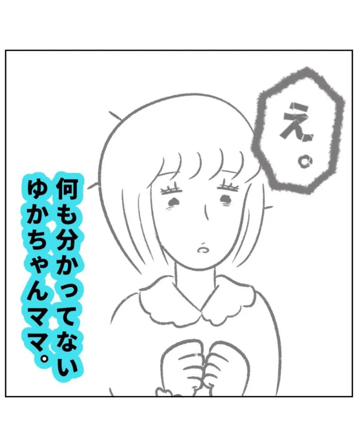 不快感を露わにするまるさんを見て「え?」と何も分かっていない様子のゆかちゃんママ。