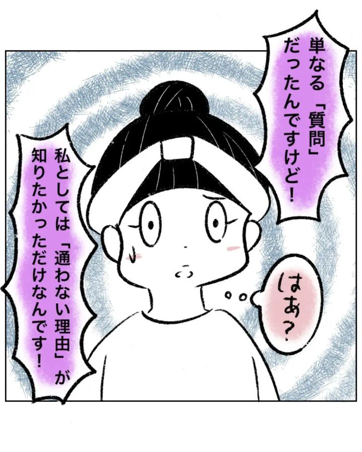 「単なる『質問』だったんですけど!私としては『通わない理由』が知りたかっただけなんです!」と自分の正当性を訴えるだけのゆかちゃんママの言葉を聞きながら、まるさんは「はぁ?」と呆れてしまいます。