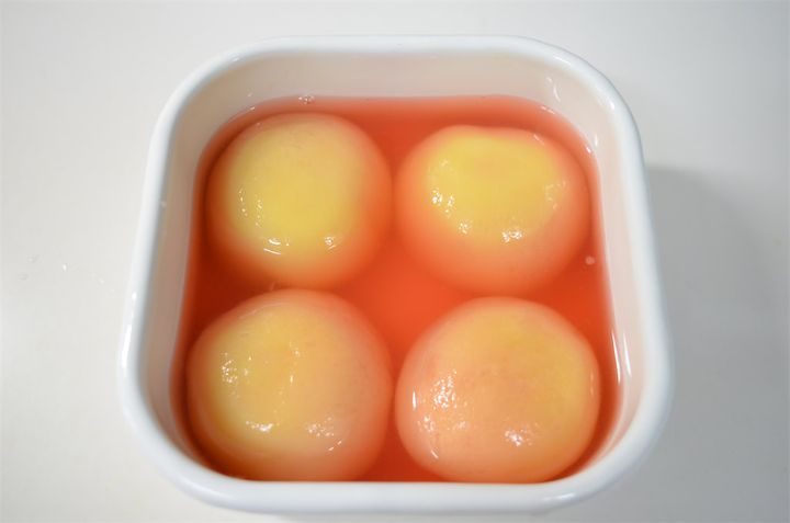 3.火を止めて粗熱を取る。桃の皮を取ったら、容器に移して出来上がり。