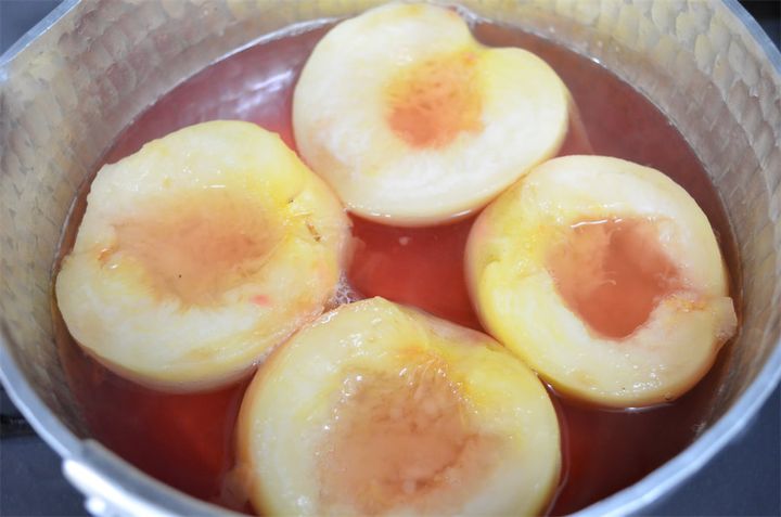 煮えた桃はとてもデリケートなので、やさしく扱いましょう。
