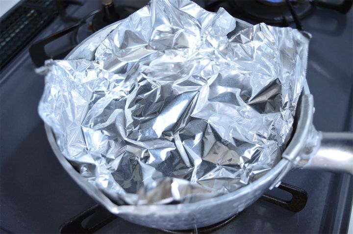 2鍋に[A]を入れ、1の桃を皮を下にして並べ、中火で5分ほど煮詰める。沸騰したら弱火にし、レモン汁を加えたら落としブタをして7分くらい煮る。