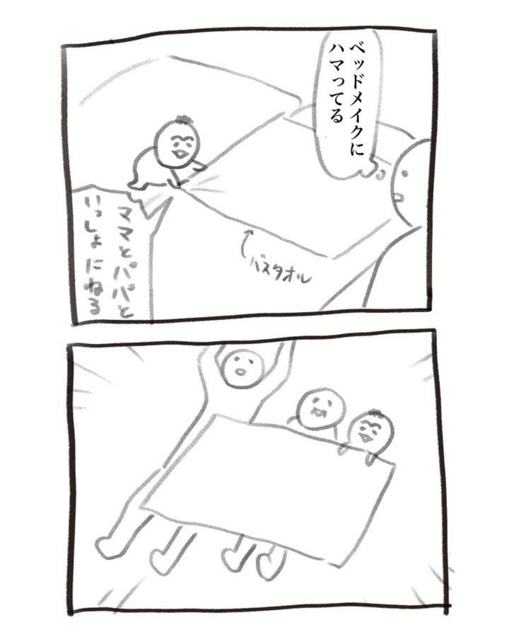 この記事ではX(旧Twitter)でバズった投稿を紹介します。今回紹介するのは、犬犬(@inu_eat_inu)さんの投稿です。毎日子どもと接していると、さまざまなドラマが起こるのではないでしょうか。ある日、犬犬さんはお子さんに「ママとパパといっしょにねる」と言われ、川の字になってバスタオルをかけ眠ったそう。するとちょっぴり切ない結果になり…?思わずクスッとしてしまう育児漫画です。
