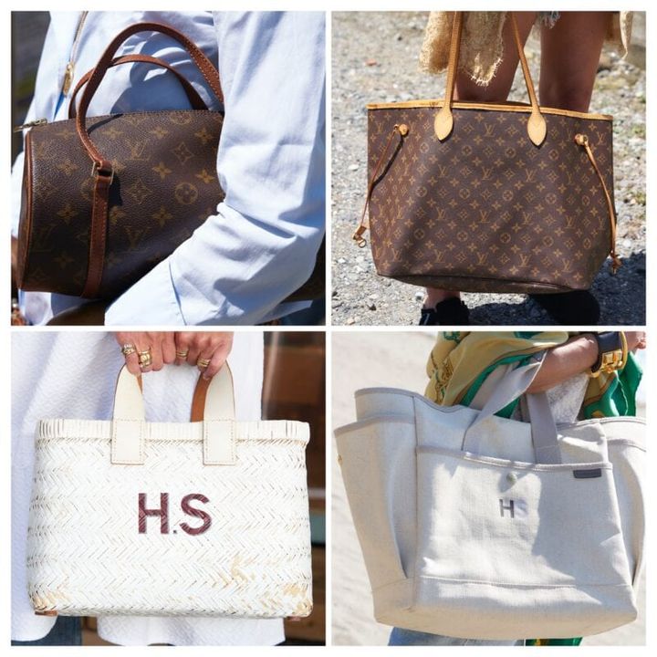 30年くらい前に買ったモノグラムのバッグは、最旬デニムコーデをきれいめに、こなれた感じに見せる名脇役です。国産ブランドのかごバッグやキャンバス生地のガーデニングバッグもお気に入り。「イニシャルを入れると愛着がわく」と鈴木さん。