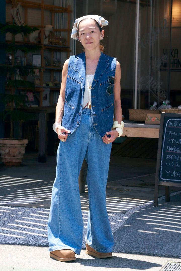 【土曜日】 トレンドのワイドデニム×ベスト、全身デニムでスタイルアップ