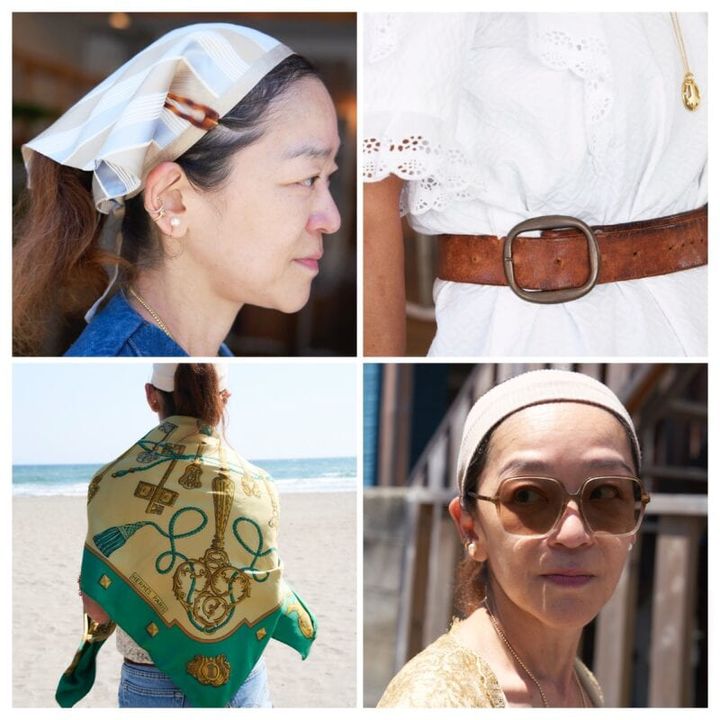 アクセサリー:スカーフ/バーニーズ・ニューヨーク、ネックレス/バーニーズ・ニューヨークなど、チャーム/ヴィンテージ、パールイヤリング/ノーブランド、イヤーカフ/ヒロタカとリメイク、サングラス/グッチ