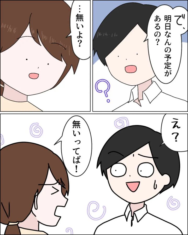 「明日なんの予定があるの?」「無いよ?」何もなくてもイヤ!!