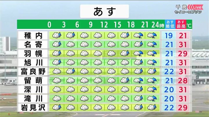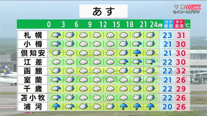 荒れることはないですが、朝晩を中心に雨でしょう。太平洋側はうねりを伴う高波に注意、警戒して下さい。札幌の最高気温は31度です。6日ぶりの真夏日で蒸し暑いでしょう。