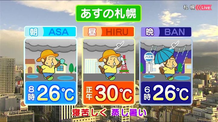 あす15日(火)の札幌です!朝昼晩の天気をもんすけでお伝えします!