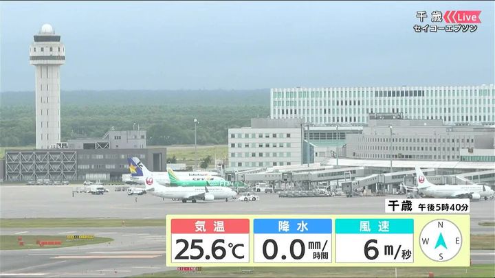 背景は14日午後5時ごろの新千歳空港情報カメラ