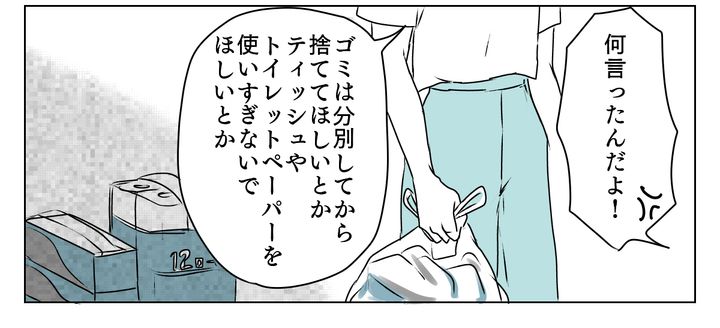 するとノブトは激昂して、「ゴミくらい分別してやれ」「ちょっとのことだろうが」と言います。