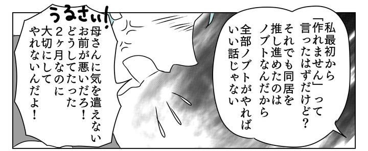 その事実を突きつけられたノブトは一瞬うろたえましたが、どうしても私を悪者にしたいようで「母さん好みの料理を作らないから……!」なんて言っています。