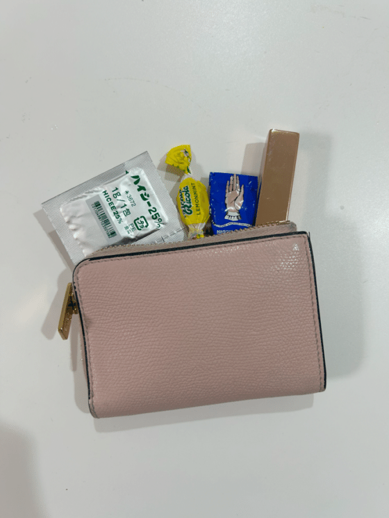 キーケースはvalextraで購入。お菓子もサプリもリップも入って万能。