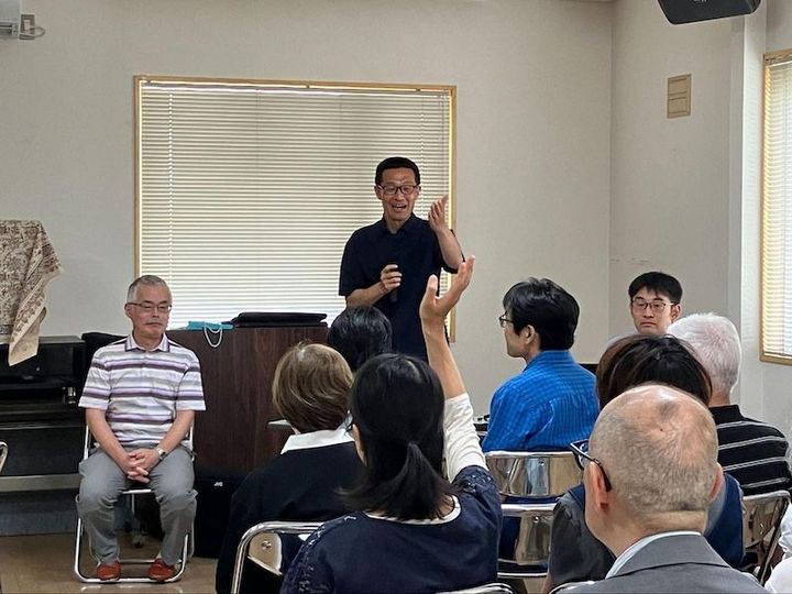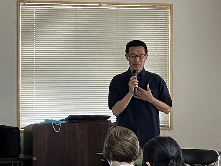 勉強会で住民に報告をする有賀さん