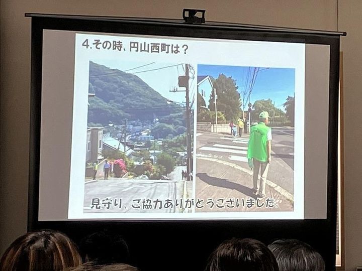 有賀さんの発表より。出没時には地域で通学の見守り活動も行われた
