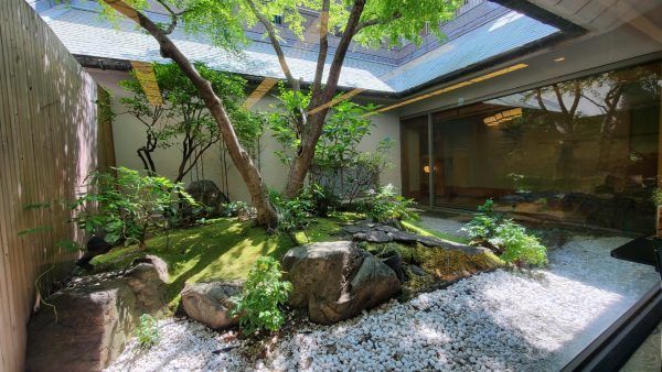中庭を見ながら食事を楽しめる