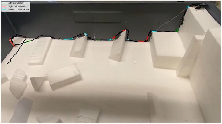 実証テスト(甲虫が障害物をクリアした経路)/ Credit: Fitzgerald et al., Adv. Sci(2025)