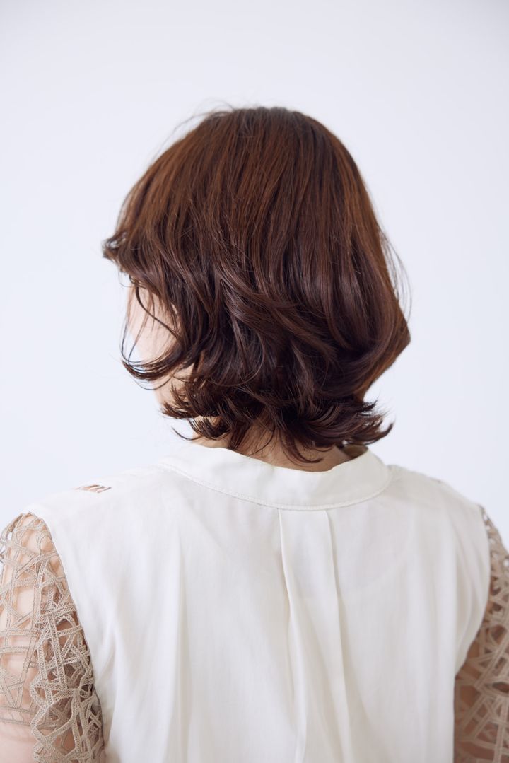 低温でかける“コテ巻き風”のパーマが主役。ラフな動きを加えて気になるクセをカバーしつつ、おしゃれ見えも叶う、アレンジも楽ちんなヘアスタイルです。