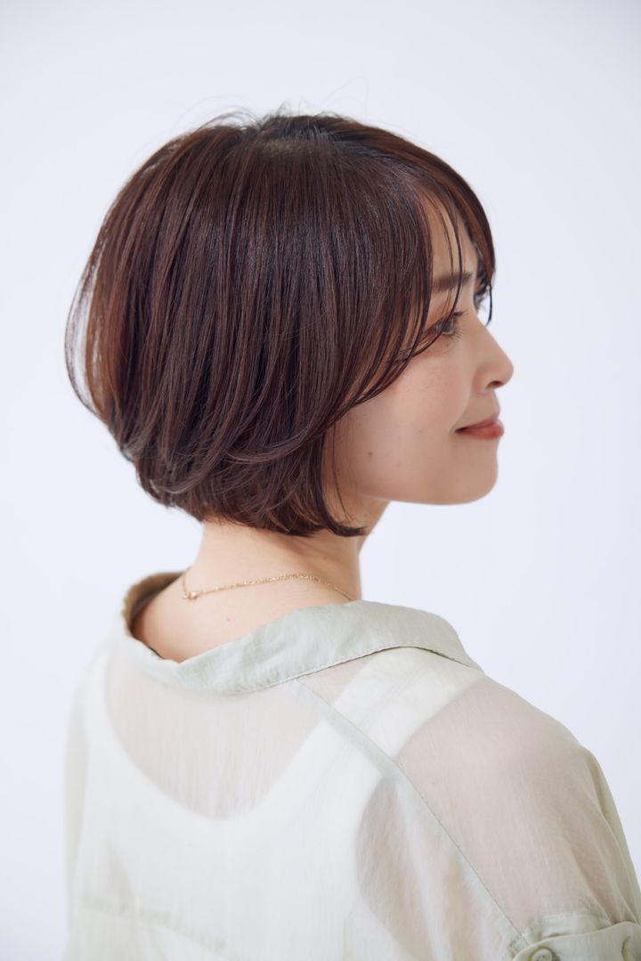 爽やかでいてカジュアルな遊び心もあるショートボブは、大人に最もニーズの高い髪型のひとつです。ほどよいツヤめきとさりげないシースルー前髪でより今年らしく!