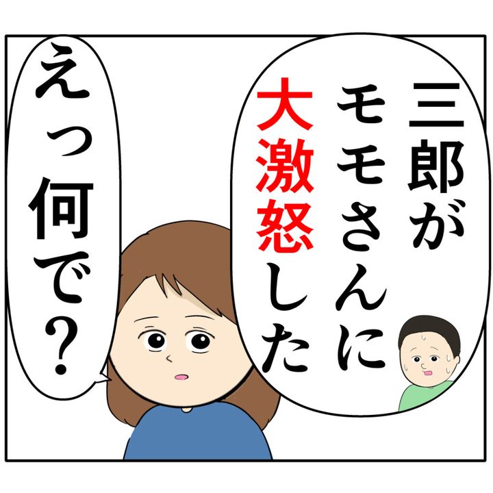「三郎さんがモモさんに大激怒した」と焦った様子で答える次郎さん。さくらさんも「えっ何で?」と驚きます。