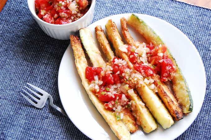 ズッキーニには、塩糀とにんにくの下味がほどよくついているので、サルサをかけなくても、そのままで十分おいしいです。