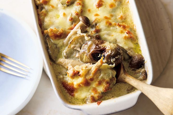 じゅわじゅわ食感の白なすで、グラタンも軽やかに! 〈白なす〉を見かけたら、ぜひトライしてみて。