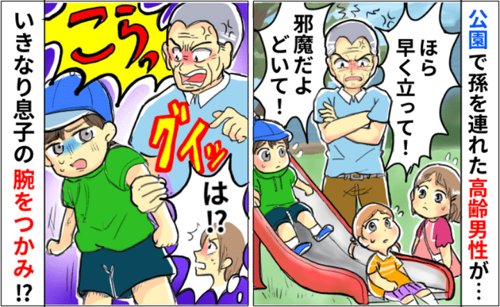 【公園で起きた衝撃の一幕】「コラッ!」高齢男性が子どもの腕をつかみ怒鳴った!泣き出す息子…母親は?
