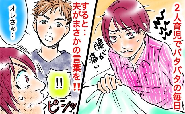 昨年、次男を出産しました。産後は上の子のお世話もあり、バタバタな毎日。2人育児の大変さを痛感していました。そんなとき、朝起きて「腰が痛い」と夫に話したところ……。