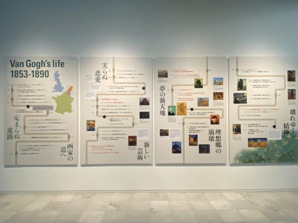 まずゴッホの生涯を4つに分けた時代を説明してくれます。ざっくりと説明文を読みつつ、、