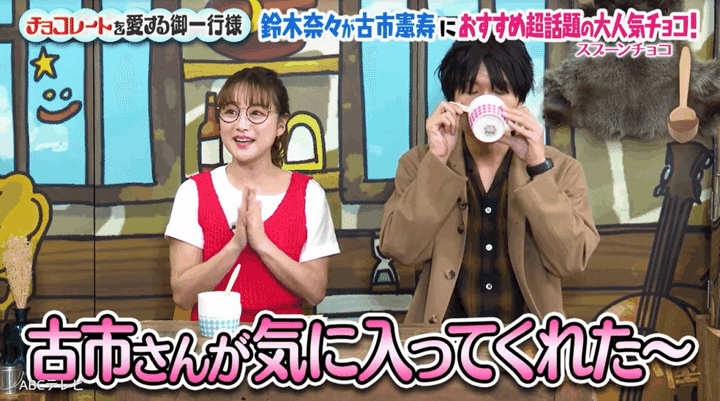 そのうちの1つ、フランスパリ発のショコラ専門店ル・ショコラ・アラン・デュカスの商品は古市氏も好きで、チョコレート愛好者なら誰でも知る商品だったため、鈴木は撃沈! しかし、濃厚なチョコレートドリンクが作れる通称“スプーンチョコ”は、古市氏も気に入ったらしい。チョコレートドリンクを試飲した古市氏が「おいしい」「チョコレートとしてもおいしい」とコメントすると、鈴木は満面の笑みで大喜びした。