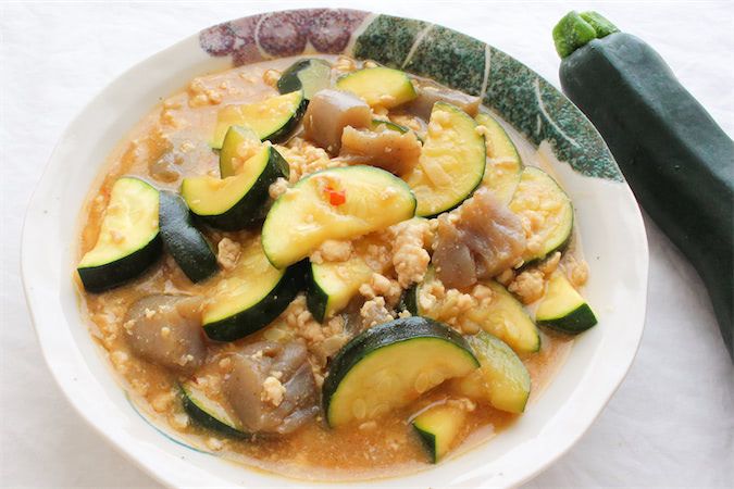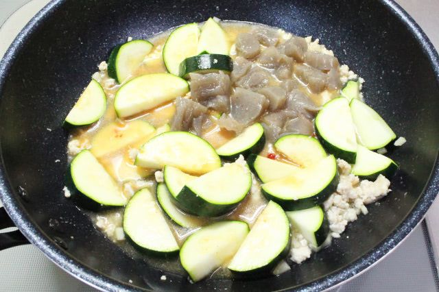 こんにゃくの切り方がポイント!「ズッキーニのそぼろ炒め」を作ってみた