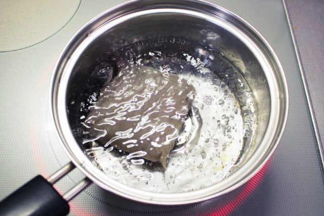茹でてこんにゃくのあく抜きをします。臭みが抜けて食感もプリッとしますよ。
