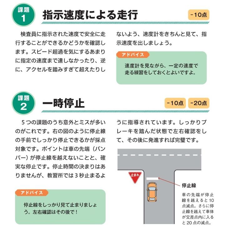 また、過去3年間に「信号無視」「速度超過」など一定の違反歴がある人は「運転技能検査」も受ける必要があります。難しい検査ではありませんが、実際に運転して、「一時停止」「右折・左折」「段差乗り上げ」等の課題を行います。