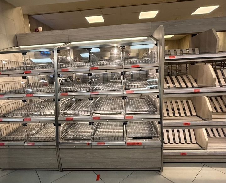 災害発生直後、人が押し寄せスーパーの棚はガラガラでした。