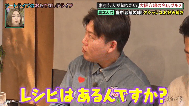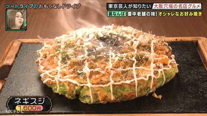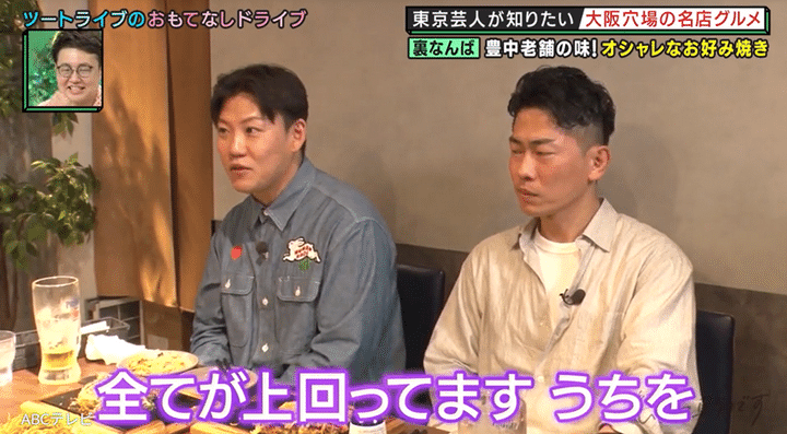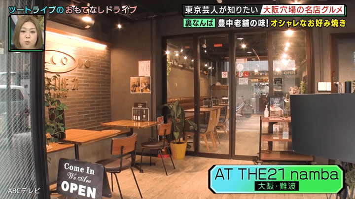 そこで、漫才賞レース『THE SECOND ~漫才トーナメント~ 2025』の王者で後輩のツートライブが、ジャングルポケットをもてなすことに。一行がやってきたのは、居酒屋が立ち並ぶ裏なんばにありながら、内装がカフェ風のオシャレなお好み焼き店・AT THE 21 namba。本店は、豊中市で40年以上続くお好み焼きの老舗で、食べログの百名店に5年連続で選出されたことで有名だ。