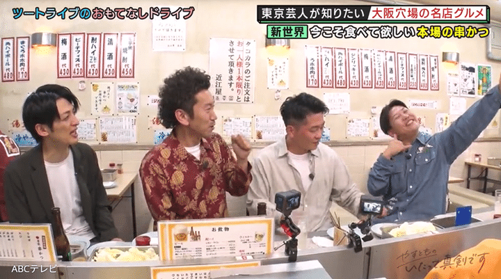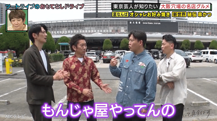 なお、ジャングルポケットとツートライブの大阪ロケ映像は、7月10日に放送された海原やすよ ともこ司会のバラエティ番組『やすとものいたって真剣です』(ABCテレビ)で公開された。ほかにも同放送回では、日本橋の「黄色い皮のしゅうまい」でお馴染みの華風料理(日本人向けにアレンジした中華料理)店・一芳亭と、新世界の串かつの老舗・近江屋 本店を、ツートライブがジャングルポケットに紹介した。