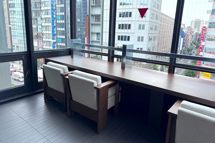 3つ目は、ビル群を望む少しリッチな印象の空間。夜には新宿らしいネオンのきらめく光景がみられます。