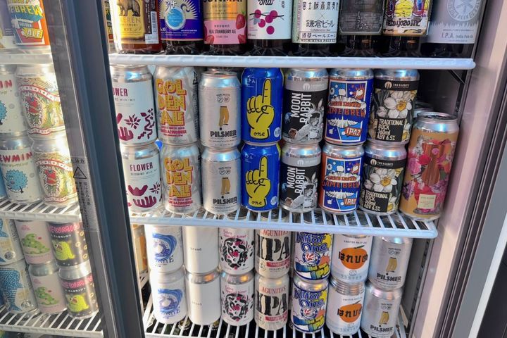 缶や瓶のデザインを楽しみつつ、自分で商品を選ぶスタイルで、国内外のクラフトビールが1本または1缶どれでも1100円。