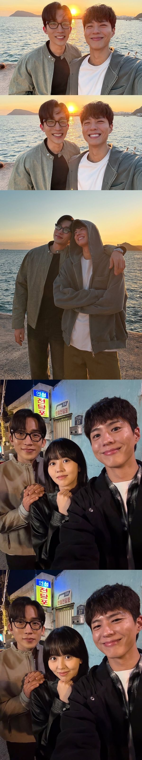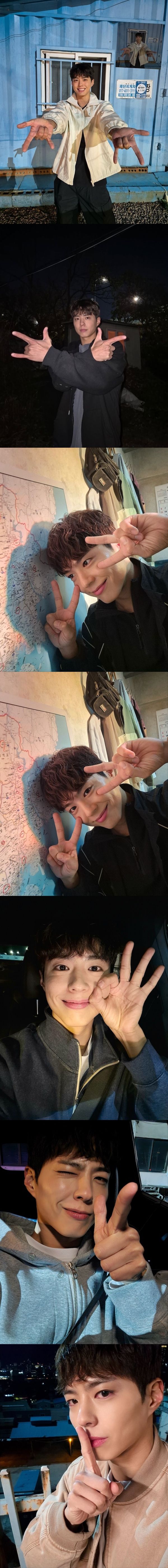 それらの写真は、現在放送中(Prime Videoで配信中)の主演ドラマ『グッドボーイ』の撮影現場で撮ったオフショットたち。指のポーズをしたショットが中心となった今回の投稿は、熱血すぎる劇中とは一味違う、パク・ボゴムの可愛さが際立っている。