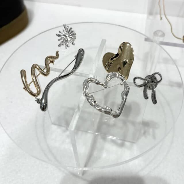 GUからは今シーズン、初めて「ブローチ」も登場。¥590とお手頃価格で、ウェーブやハートモチーフなど全3種のデザインを展開しています。
