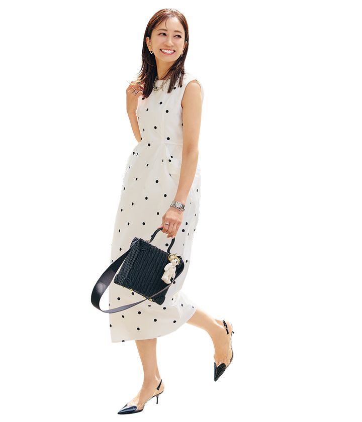 妻、母、ライター、ミスコン、女子会にショッピング……未知数の〝多スク〟はオシャレで時短にもなる映えワンピースで乗りきる! 本誌2年目ライター小泉春香の【映え水玉ワンピ】をご紹介します。