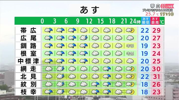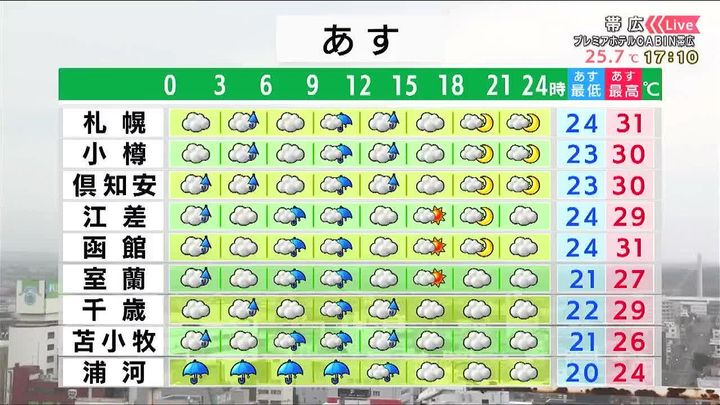 ・あすの札幌の朝昼晩の天気