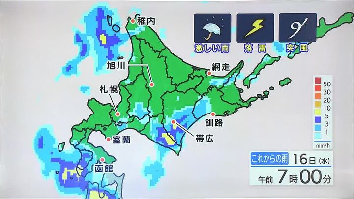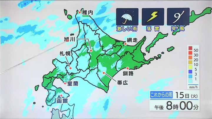 ※15日午後5時時点の情報です。最新の気象情報は、HBCウェザーセンターのホームページなどでご確認ください。HBCは気象庁の認可を2001年に得て以来、民間気象会社の一つとして「HBCの独自予報」を発信しています。