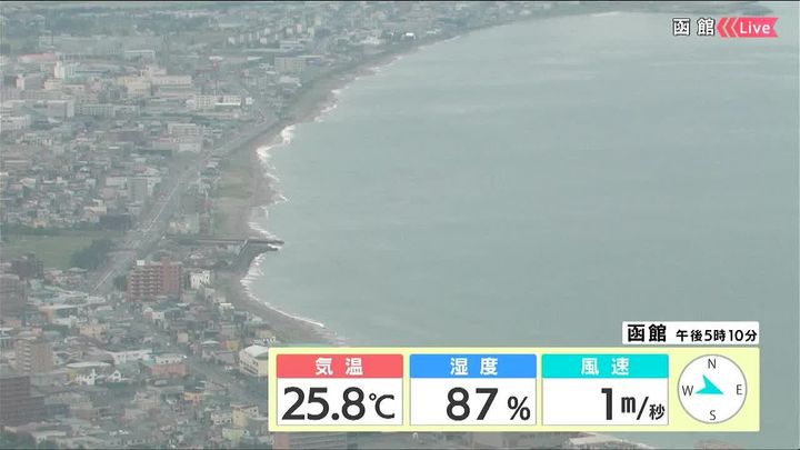 背景は15日午後5時ごろの函館情報カメラ