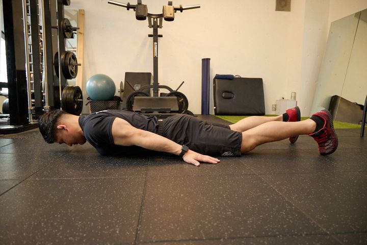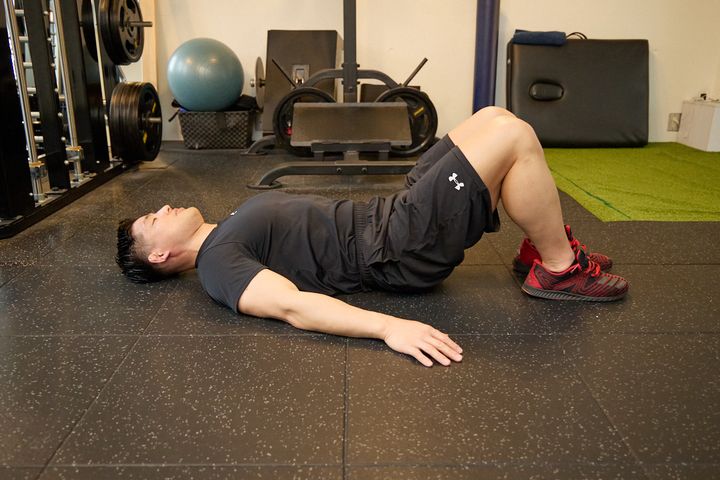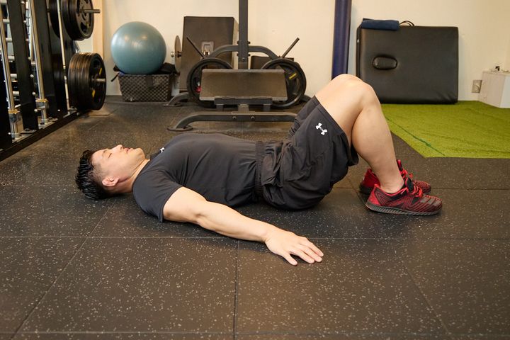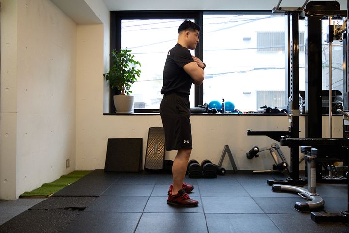 ライター東がやってみると、背中が丸まりません。これは普段の呼吸が浅く、背中の動きが悪くなっているためだとか。石井トレーナーくらい、しっかりと丸まるイメージで