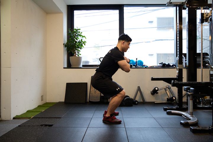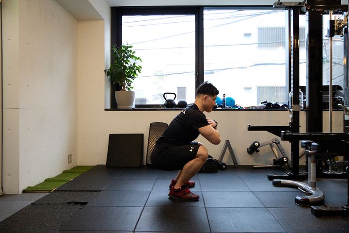 プロセス③では、このくらい背中が丸まるのがベスト!