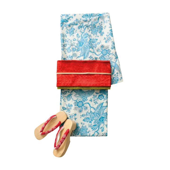 ミント柄浴衣 52,800円/ソレイアード(京都丸紅) 帯、帯締め、下駄 各参考商品/京都丸紅