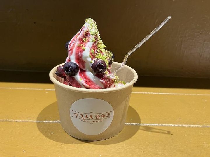 ブルーベリー×ピスタチオ×白玉のソフトクリーム…なかなかない味を、試してみてはいかがでしょうか。### ②おいりソフト