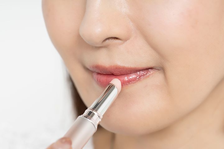唇を自然に染める美容液リップを塗れば、口紅にはないナチュラルな血色感が現れます。