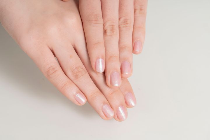 頬にほんのり血色感を宿しつつ、ナチュラルな眉とリップできちんと感をプラス。指先を淡いピンクネイルにして、さりげなく“手をかけた感”のあるオフィスメイクの出来上がり。