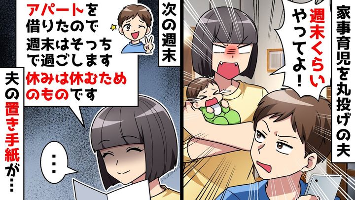 家事育児を丸投げの夫に「週末くらいやってよ!」夫「週末はアパートで休むわ」限界がきた妻の決断は?